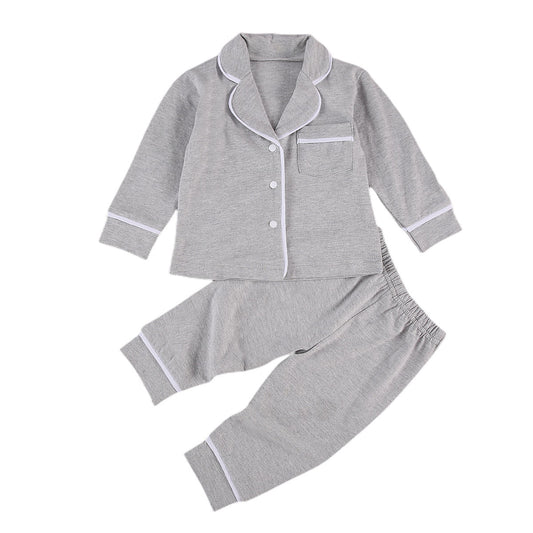 0-5Years Toddler Kids Baby Girls Boys 2Pcs 100% Cotton Pajama Sets Long Sleeve Jacket Shirt Pants Solid Sleepwear Red Gray Pink