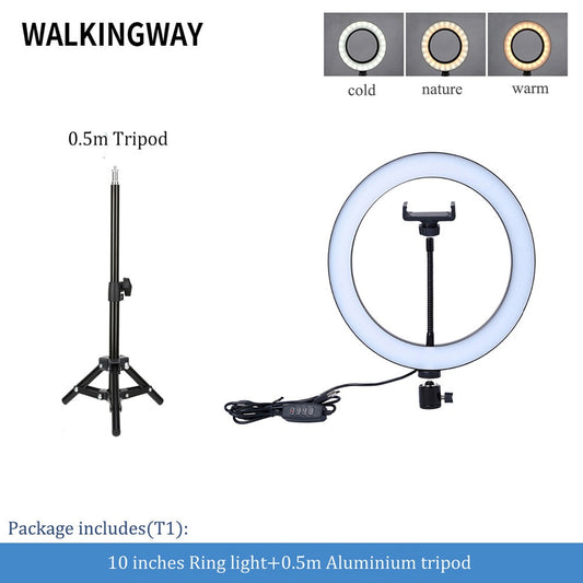 10" LED Ring Light Photographic Selfie Ring Light with Stand for Youtube Makeup Video Studio Tripod Ring Light for Smartphone