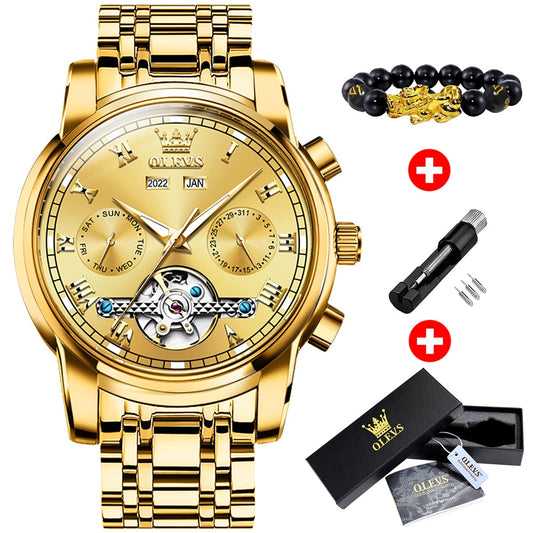 OLEVS Mechanical Men Watches Automatic Stainless Steel Waterproof Date Week Green Fashion Classic Wrist Watches 6607