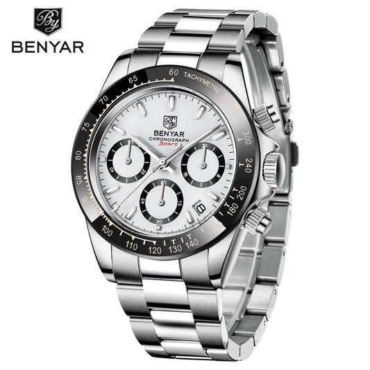 BENYAR Sports Men Quartz Wrist Watch 3Bar Waterproof Stainless Steel Watch for Men Luxury Fashion Chronograph Relojes Hombre