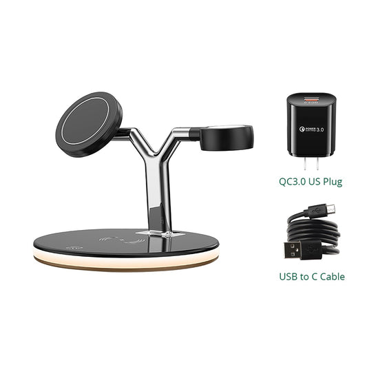 Bonola 15W 3 In 1 Wireless Chager for iPhone 12/14/13 iWatch Airpods Pro Magnetic Fast Charging Station Dock Stand Touch Light